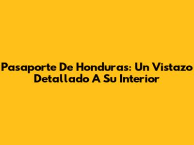 Pasaporte De Honduras: Un Vistazo Detallado A Su Interior