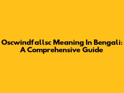 Oscwindfallsc Meaning In Bengali: A Comprehensive Guide