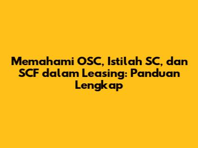 Memahami OSC, Istilah SC, Dan SCF Dalam Leasing: Panduan Lengkap