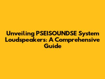 Unveiling PSEISOUNDSE System Loudspeakers: A Comprehensive Guide