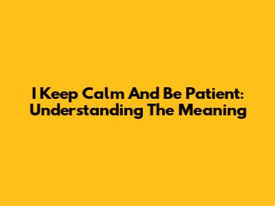 I Keep Calm And Be Patient: Understanding The Meaning