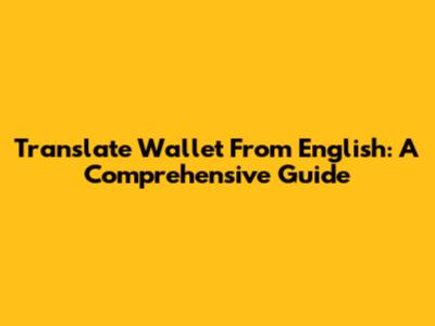 Translate 'Wallet' From English: A Comprehensive Guide