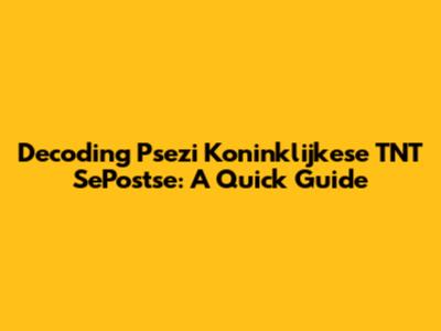 Decoding Psezi Koninklijkese TNT SePostse: A Quick Guide