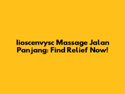 Iioscenvysc Massage Jalan Panjang: Find Relief Now!