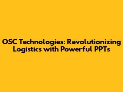Hey there, logistics enthusiasts! Have you ever wondered how OSC Technologies are transforming the world of logistics? Well, buckle up, because we're about to dive deep into the fascinating realm of OSC Technologies in Logistics, specifically through the lens of powerful PowerPoint presentations (PPTs). We'll explore how these presentations are not just pretty visuals, but essential tools driving efficiency, enhancing decision-making, and ultimately, reshaping the industry. Get ready to uncover the secrets behind using OSC Technologies to optimize your logistics operations.