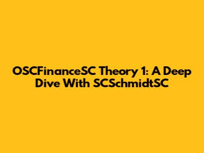 OSCFinanceSC Theory 1: A Deep Dive With SCSchmidtSC