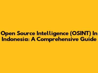 Open Source Intelligence (OSINT) In Indonesia: A Comprehensive Guide