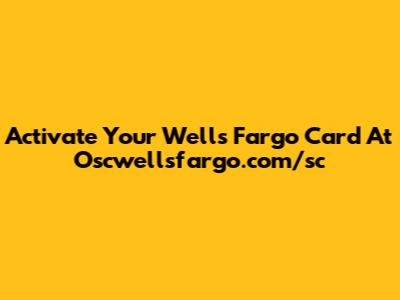 Activate Your Wells Fargo Card At Oscwellsfargo.com/sc