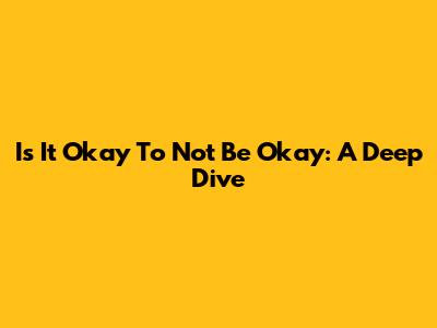 Is It Okay To Not Be Okay: A Deep Dive