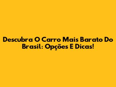 Descubra O Carro Mais Barato Do Brasil: Opções E Dicas!