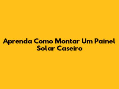 Aprenda Como Montar Um Painel Solar Caseiro