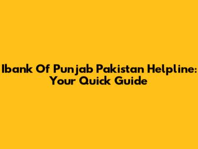 Ibank Of Punjab Pakistan Helpline: Your Quick Guide