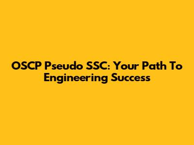 OSCP Pseudo SSC: Your Path To Engineering Success
