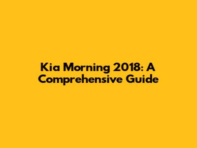 Kia Morning 2018: A Comprehensive Guide