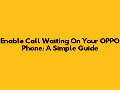Enable Call Waiting On Your OPPO Phone: A Simple Guide