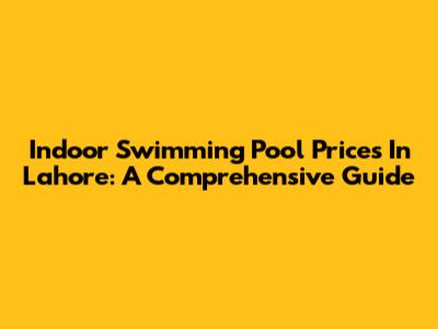 Indoor Swimming Pool Prices In Lahore: A Comprehensive Guide