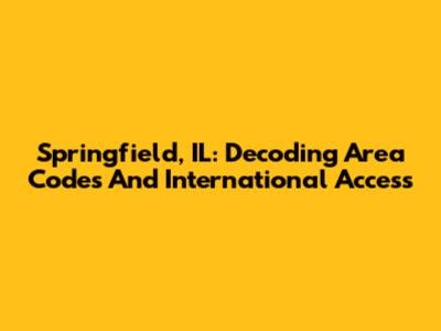Springfield, IL: Decoding Area Codes And International Access