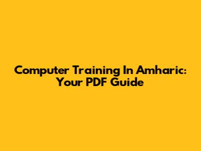 Computer Training In Amharic: Your PDF Guide