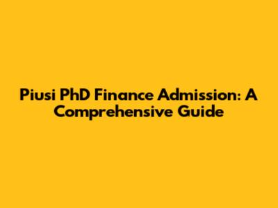 Piusi PhD Finance Admission: A Comprehensive Guide