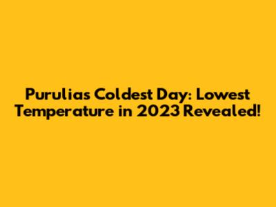 Unearthing the Lowest Temperature in Purulia in 2023