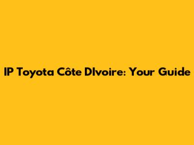 IP Toyota Côte D'Ivoire: Your Guide
