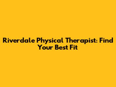 Riverdale Physical Therapist: Find Your Best Fit