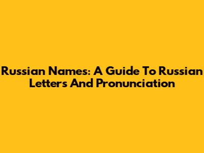 Russian Names: A Guide To Russian Letters And Pronunciation