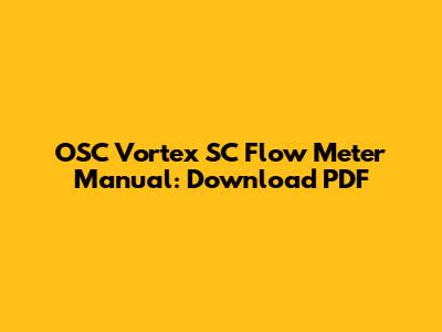 OSC Vortex SC Flow Meter Manual: Download PDF