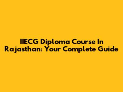 IIECG Diploma Course In Rajasthan: Your Complete Guide