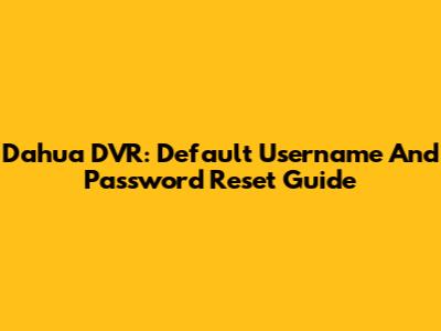 Dahua DVR: Default Username And Password Reset Guide