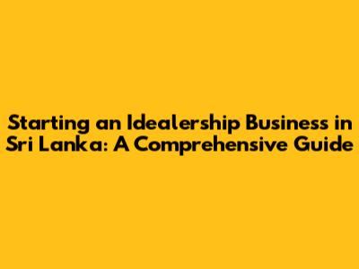 Hey everyone! Thinking about diving into the world of business in Sri Lanka? Starting an idealership could be your golden ticket! It's a fantastic path to entrepreneurship, allowing you to represent established brands and tap into existing markets. But, like any venture, it comes with its own set of challenges and requirements. In this comprehensive guide, we'll break down everything you need to know about setting up and running a successful idealership business in Sri Lanka. We're talking about the whole shebang – from understanding the landscape to navigating legalities, and even some insider tips to help you thrive! So, buckle up, because we're about to embark on a journey that could lead you to financial freedom and a rewarding career.