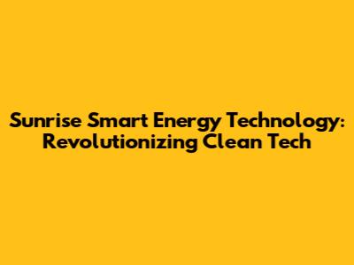 Hey guys! Let's dive into the world of Sunrise Smart Energy Technology! This is a game-changer, and if you're even remotely interested in clean tech, you're going to want to stick around. We're not just talking about solar panels anymore; we're talking about a complete transformation in how we generate, distribute, and consume energy.