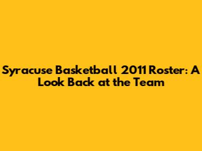 The 2011 Syracuse basketball team left a lasting legacy. They were a team that represented the spirit of Syracuse basketball. They played with passion, determination, and a never-say-die attitude. The players and the team's accomplishments are still talked about by fans. The team's spirit and accomplishments continue to be celebrated. This team is a reminder of the best of college basketball. The 2011 team’s legacy has had a long-lasting impact. They represented the best aspects of college basketball. Their performance is remembered by fans. Their lasting legacy reflects their spirit, determination, and the deep impact they made on the world of college basketball. The 2011 team represents the spirit of Syracuse basketball. Their legacy continues to be remembered and celebrated by fans. The team's spirit of determination and their impact on the world of college basketball. The team's performance is still remembered. Their achievements are still talked about. The players’ impact has a lasting impact on college basketball.