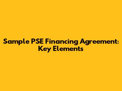 Sample PSE Financing Agreement: Key Elements