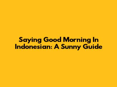 Saying Good Morning In Indonesian: A Sunny Guide