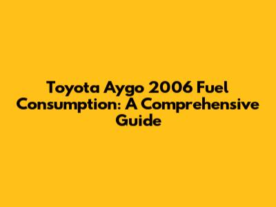 Toyota Aygo 2006 Fuel Consumption: A Comprehensive Guide