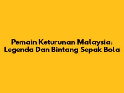 Pemain Keturunan Malaysia: Legenda Dan Bintang Sepak Bola