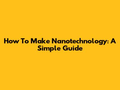 How To Make Nanotechnology: A Simple Guide