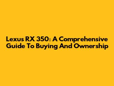 Lexus RX 350: A Comprehensive Guide To Buying And Ownership