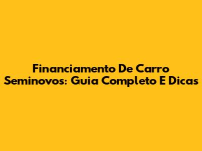 Financiamento De Carro Seminovos: Guia Completo E Dicas