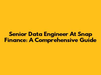 Senior Data Engineer At Snap Finance: A Comprehensive Guide