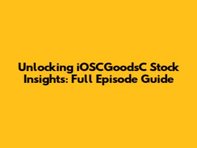 What to Look for in iOSCGoodsC Stock Episodes