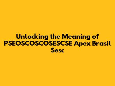 Without further context, it's impossible to definitively say what "PSEOSCOSCOSESCSE Apex Brasil Sesc" means. However, by understanding the individual components, we can make educated guesses and narrow down the possibilities.