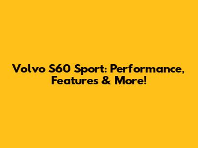 Volvo S60 Sport: Performance, Features & More!