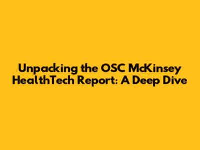 Hey everyone, let's dive into the fascinating world of healthtech! Today, we're taking a close look at the OSC McKinsey HealthTech Report. This report is a goldmine of insights, trends, and future predictions, so it's a must-read for anyone interested in the intersection of healthcare and technology. The report usually covers a wide range of topics, from telehealth and digital therapeutics to AI-driven diagnostics and personalized medicine. Think of it as a comprehensive roadmap, guiding us through the current state of the healthtech landscape and offering a glimpse into what's coming next. Understanding the OSC McKinsey HealthTech Report is crucial for anyone involved in healthcare, tech, or investment. So, grab your coffee, get comfy, and let's break it all down. We'll explore the key takeaways, the major trends, and what this all means for the future of healthcare. It is very important to highlight that this report is very influential and will have a strong impact on the healthtech industry, influencing strategies, investments, and even policy decisions. This report is a yearly snapshot, providing a crucial benchmark for the industry's progression. It often includes data-driven analysis, case studies, and expert opinions, making it a valuable resource for stakeholders across the board. The report is organized around key themes. These themes usually reflect the major shifts and developments in the healthtech sector, which often include a focus on digital health, data analytics, and patient-centered care. The OSC McKinsey HealthTech Report gives a unique combination of analysis and foresight. The depth of the report helps to provide a holistic view of the market. This report is a useful tool and resource for staying informed in a very fast-paced industry.