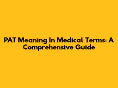 PAT Meaning In Medical Terms: A Comprehensive Guide