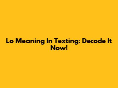 Lo Meaning In Texting: Decode It Now!