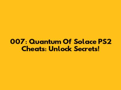 007: Quantum Of Solace PS2 Cheats: Unlock Secrets!