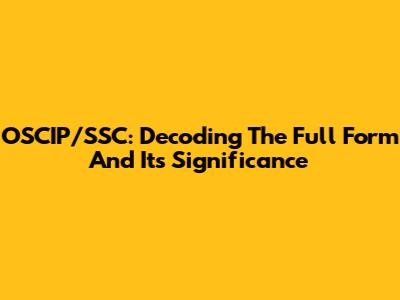 OSCIP/SSC: Decoding The Full Form And Its Significance